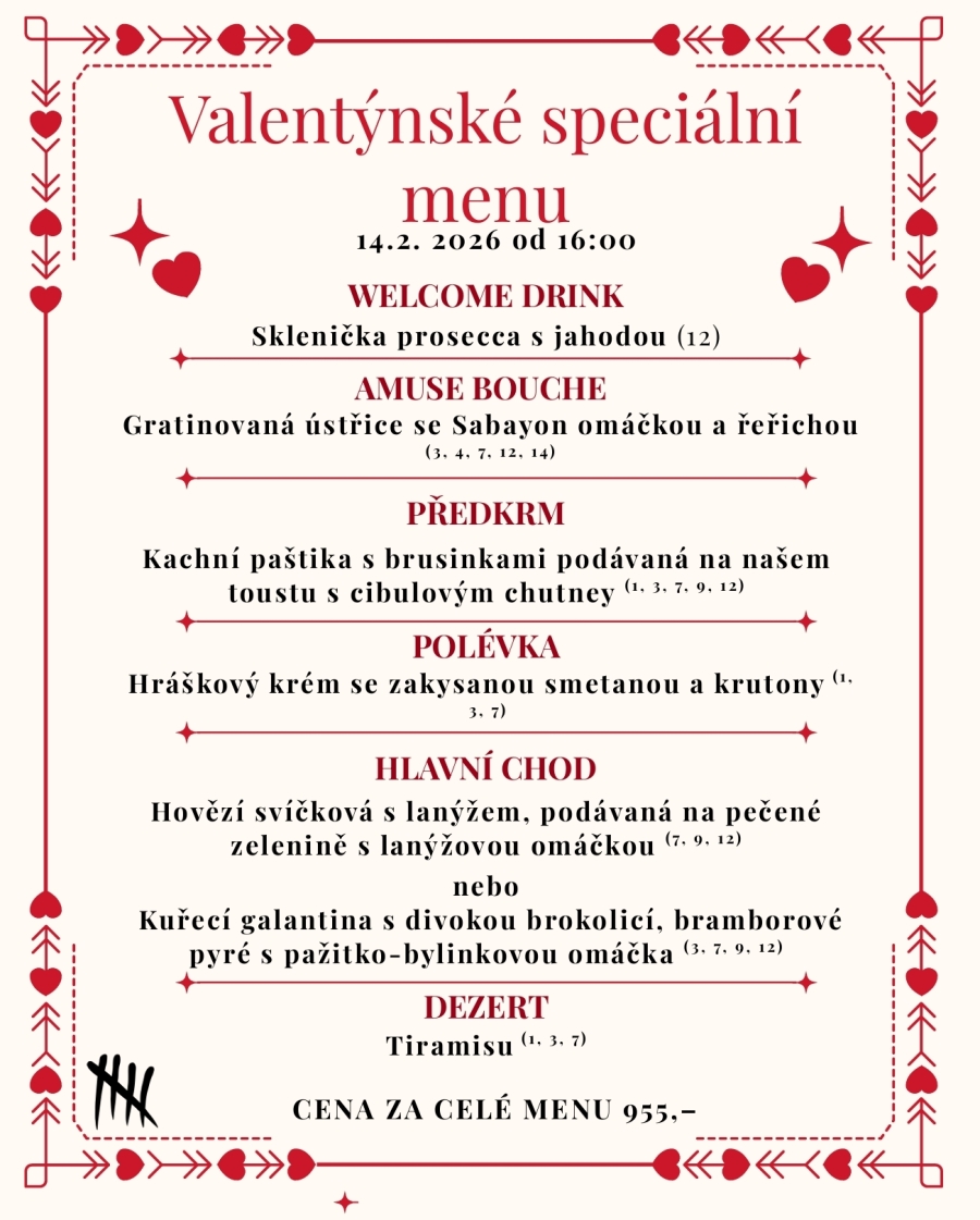 Na letošní Valentýn jsme pro Vás připravili speciální valentýnské menu, které si vychutnáte v klidné atmosféře naší pivovarské restaurace.