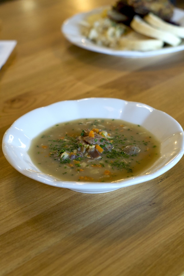 - Tradiční husí kaldoun s máslovou zelninou, nudlemi a játrovými knedlíčky