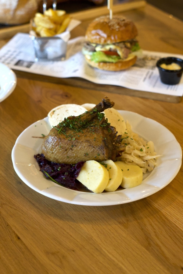 - 1/4 konfitované kachny, červené a bílé zelí, bramborové a houskové knedlíky