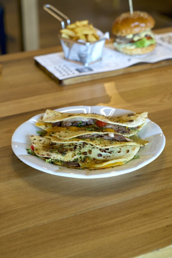 - Lokše s trhaným husím a kachním masem, zeleninou, cheddarem a limetkovou majonézou